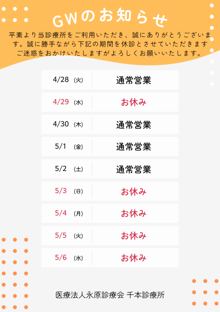 GW期間中の休診のお知らせ